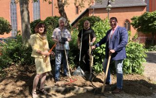 Eine unansehnliche, weil meist vermüllte und ungepflegte Grünfläche in unmittelbarer Nachbarschaft zur Geschäftsstelle von LICHTBLICK, Stiftung der Evangelischen Marienkirchengemeinde zu Hanau, hatte den Anstoß für ein sowohl ökologisch als auch sozial nachhaltiges Projekt geliefert. Jetzt unterstützte die Baugesellschaft Hanau das