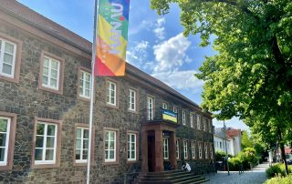 Baugesellschaft Hanau beteiligt sich am Pride Month Die Baugesellschaft Hanau bekennt Flagge und beteiligt sich mit verschiedenen Aktionen am Pride Month. Neben einer Regenbogenfahne vor dem Verwaltungsgebäude und verschiedenen Postings in den sozialen Netzwerken, unterstützt sie auch die Arbeit des