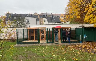 Hühner der Baugesellschaft Hanau erobern Stadtteil Lamboy Das Projekt der Baugesellschaft Hanau „Hühner erobern die Stadt“ breitet sich in Hanau immer weiter aus und hat jetzt auch den Stadtteil Lamboy erreicht. Seit Projektbeginn im April 2019 wurden mittlerweile 13 Hühnerställe