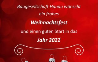 Das Team der Baugesellschaft Hanau wünscht ein frohes Weihnachtsfest und einen guten Start in das Jahr 2022.